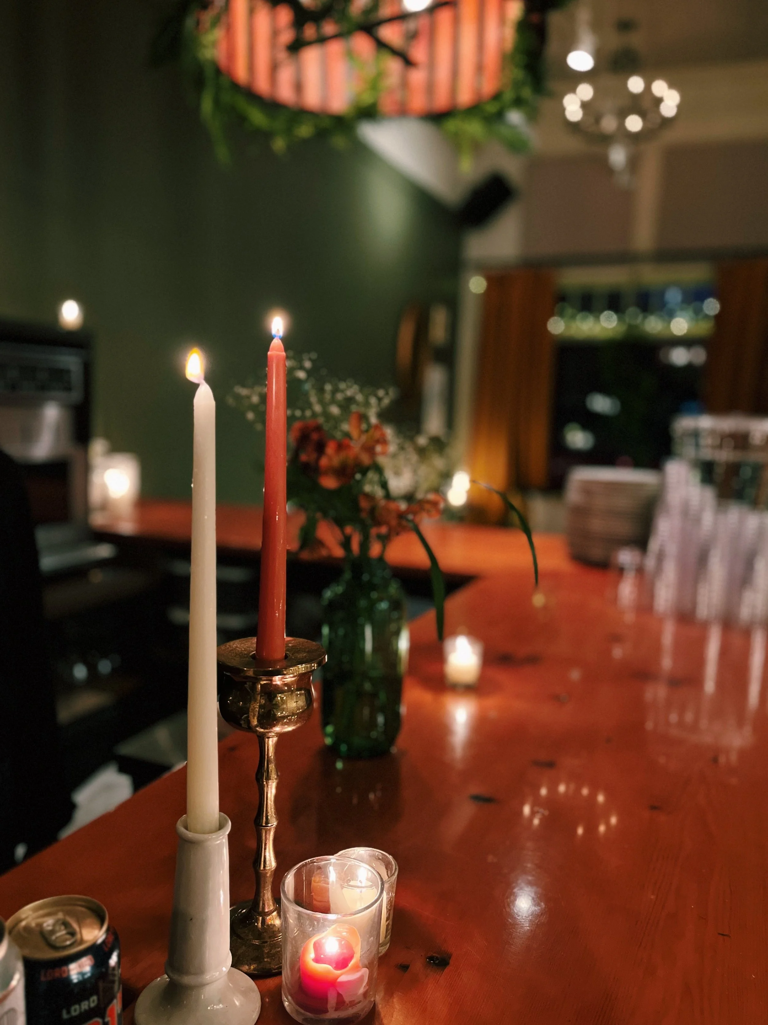 All tables, chairs, tableware, napkins, linens, glassware, and servingware included in the rehearsal dinner packages. Candles provided. Customize the space to suit your aesthetic - bring in decor to match your vibe.